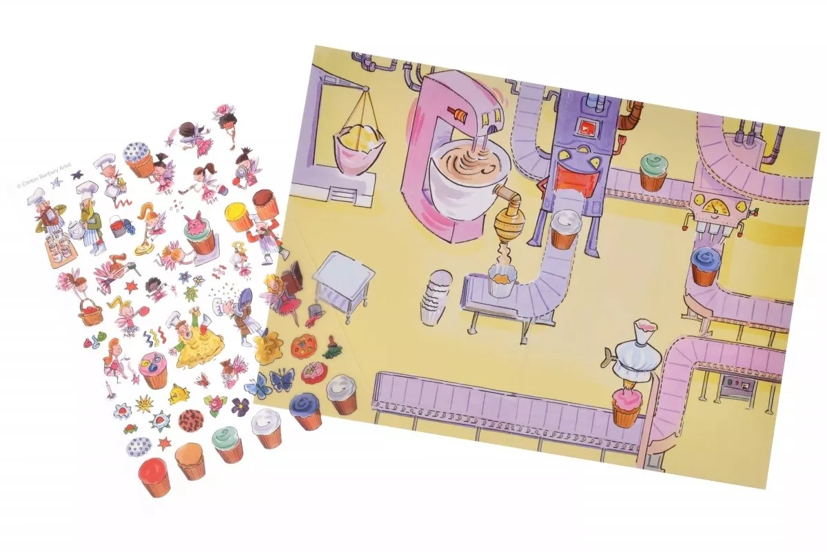В наборе Кондитерская фей малыш найдет яркую красивую открытку с забавной кондитерской, а также множество переводных наклеек с феями и десертами. Наклейки легко переносятся с бумажной основы, достаточно лишь приложить картинку на разворот открытки и потереть обратным концом карандаша, шариковой ручки или монеткой. Таким образом, дети могут создавать собственные истории и придумывать различные сюжеты в ходе игры.