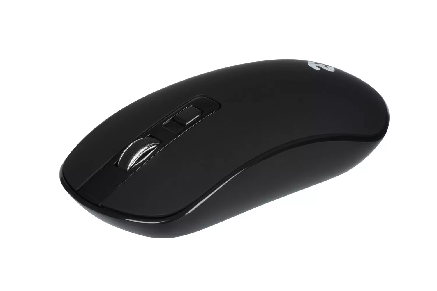 Мышь выполнена из прочного поликарбоната и софт-тач покрытие черного цвета. Форма корпуса симметрична. Четыре ножки обеспечивают плавное движение. Питание реализовано с помощью двух элементов стандарта AAА. Для подключения используется компактный USB-передатчик, который можно спрятать в мыши для транспортировки. В манипулятора есть две клавиши, кнопка регулировок dpi, а также колесико с поддержкой нажатия. Эта миниатюрная мышь подойдет как для правшей, так и левшей. Вес составляет 55 г.