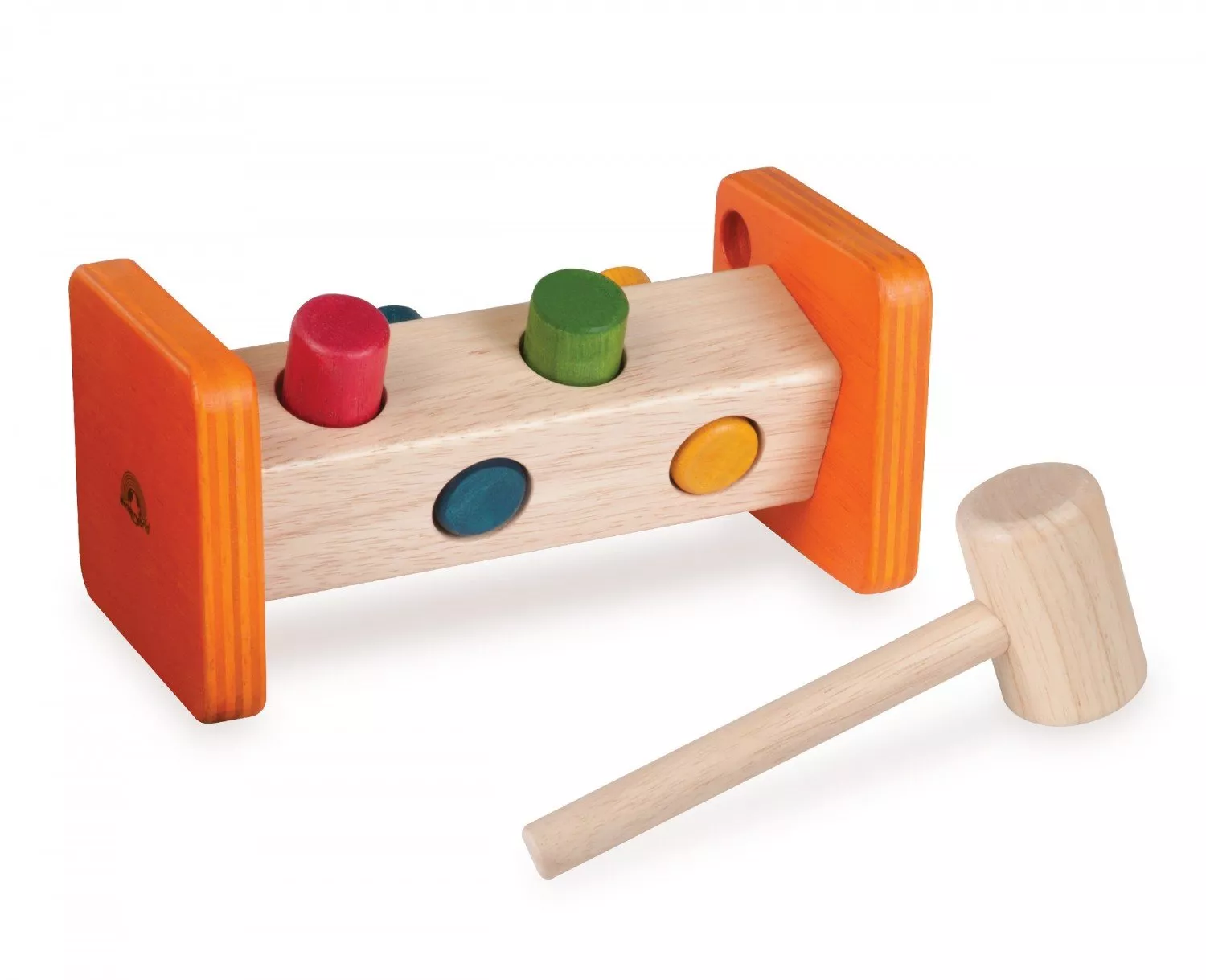 Ребенок может ударить по косяку с обеих сторон и двигать тем самым детали игрушки. Но ему надо научиться правильно ударять, сортируя во время игры цвета.