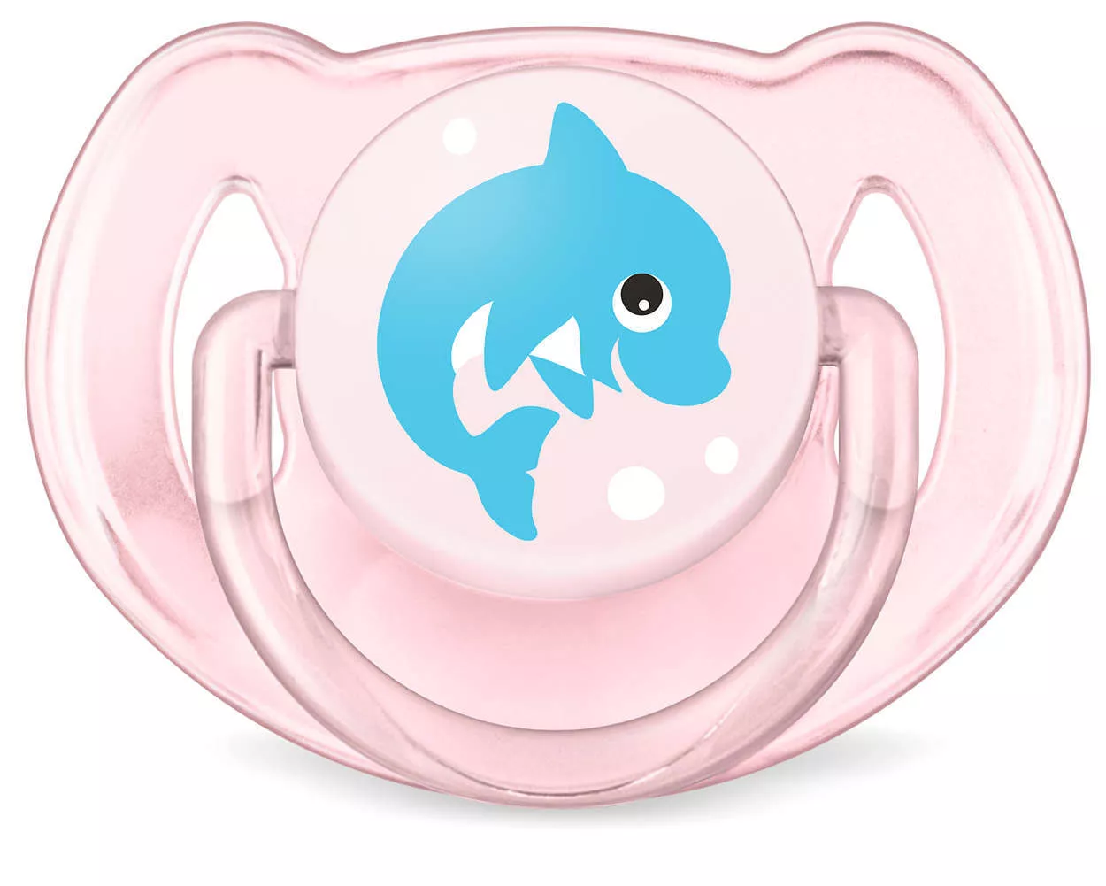 Плоские симметричные соски пустышек Philips Avent каплевидной формы учитывают строение и естественное развитие неба, зубов и десен малыша и гарантируют комфорт, даже если пустышка переворачивается во рту.