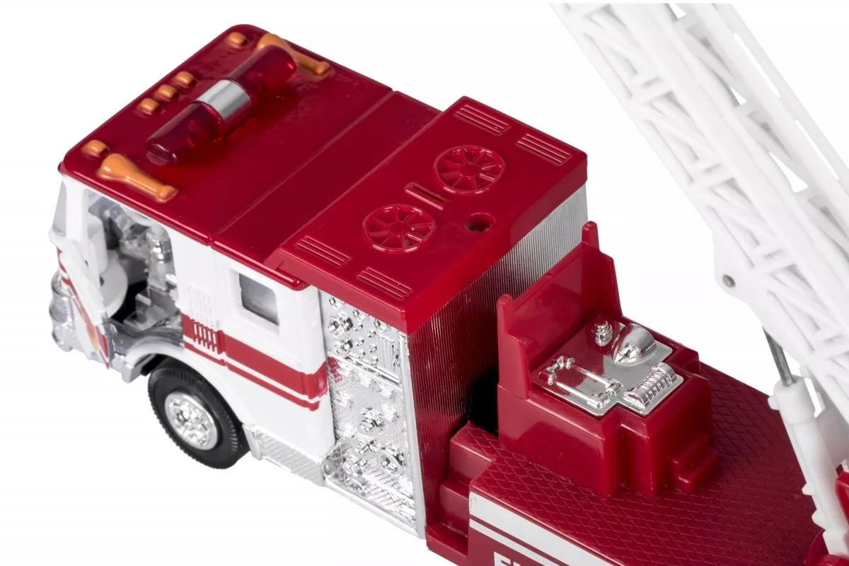 Пожарная машина с лестницей Goki - мечта для каждого маленького спасателя. Детская игрушечная классическая пожарная машина - это функциональная игрушка, с инерционным механизмом и выдвижной лестницей. Такая игрушка позволит ребенку развить моторику, воображение, логическое и творческое мышление и пробудит интерес к механике. Изготовлена из качественного и безопасного материала. Будет помогать малышам спасать игрушки во время детских спасательных операций.