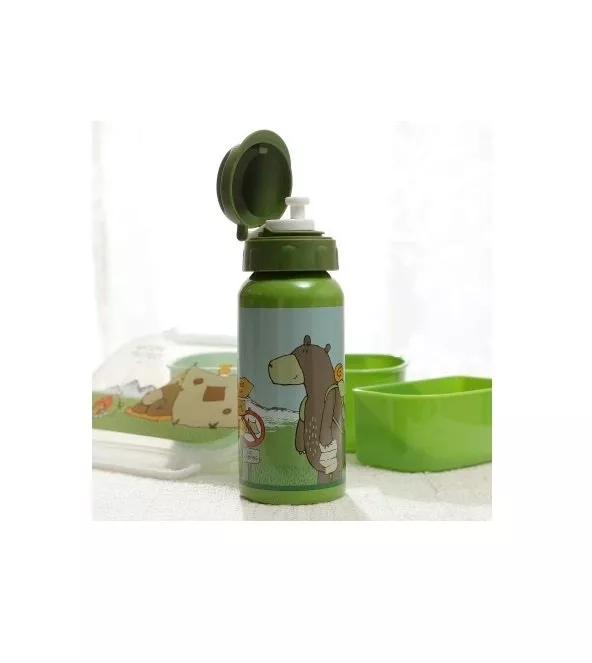«Grizzly» - практичная детская бутылочка для воды от немецкого бренда sigikid. Бутылочка зеленого цвета с рисунком мишки-путешественника понравится детям. Вместимость 400 мл. Крышка надежно закрывается, а специальный носик позволяет удобно пить воду. В конструкции клапана есть силиконовые вставки, которые герметизируют бутылочку. Материалы безопасны для здоровья: колба произведена из металла, крышечка и носик - из полипропилена.