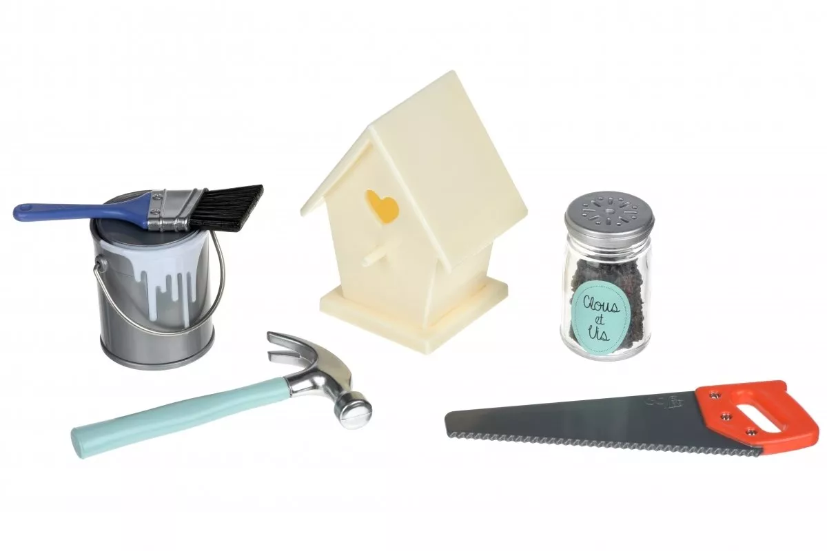 Строить или изготавливать что-то своими руками всегда очень интересно. Особенно, если мастерить определенное изделие, которое принесет пользу для окружающих или, скажем, для животных или птиц. Набор аксессуаров «Инструменты для дерева» от Our Generation содержит все необходимое, чтобы создать оригинальный домик для птиц: краска и кисточка, молоток, домик, пила и баночка с гвоздями. Все элементы изготовлены из пластмассы и являются абсолютно безопасными для малыша. Играя с набором, ребенок будет развивать мелкую моторику рук, а также навыки мастерства.