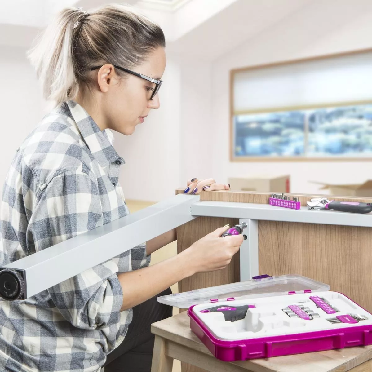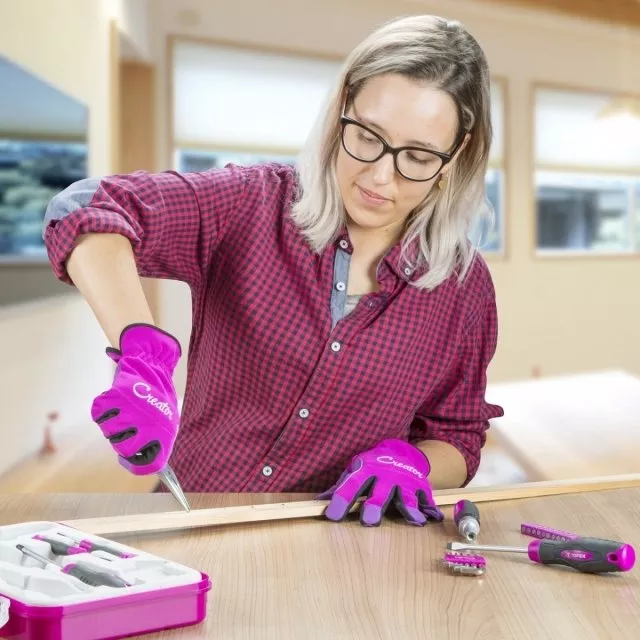 Набор TOPEX Creator (40D100) - это 37 предметов, подобранных таким образом, чтобы облегчить выполнение всех мелких работ, связанных с затягиванием винтов и сборкой. В набор Creator входят, в частности, разводной ключ, что позволяет отвинчивать и завинчивать винты и гайки разных размеров. Удобная отвертка - рукоятка с трещоткой и магнитный держатель для сменных наконечников имеют эргономичные рукоятки, которые гарантируют комфортную работу. Кроме того, в набор входит комплект из 7 шестигранных ключей, 7 шестигранных торцовых головок и 20 сменных наконечников. Все упаковано в удобный кейс, который облегчает хранение, транспортировку и помогает сохранить инструмент в идеальном порядке. Любимая женщинами цветовая гамма, дизайн и аккуратное выполнение линейки TOPEX Creator - это отличный выбор для женщин, которые хотят иметь собственный надежный инструмент.