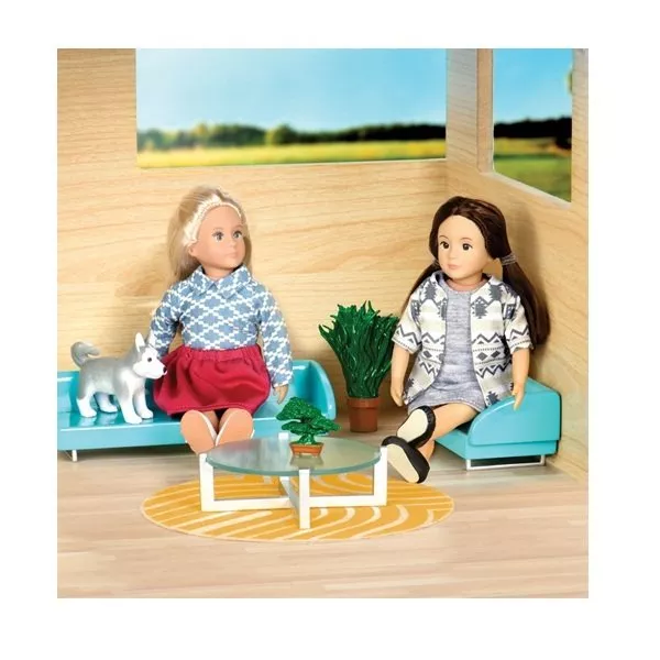 Мебель из серии "Городская жизнь" подарит вашей игрушечной гостиной яркие краски и оригинальный дизайн. Набор хорошо дополнит коллекцию игрушек LORI и совместим со всеми куклами 15 см. В комплект входят все необходимые элементы для создания современной гостиной: диван, ковер, кресло, кофейный столик и даже комнатное растение - дерево Бонсай. Все элементы набора изготовлены из текстиля и качественной пластмассы и являются абсолютно безопасными для детей.