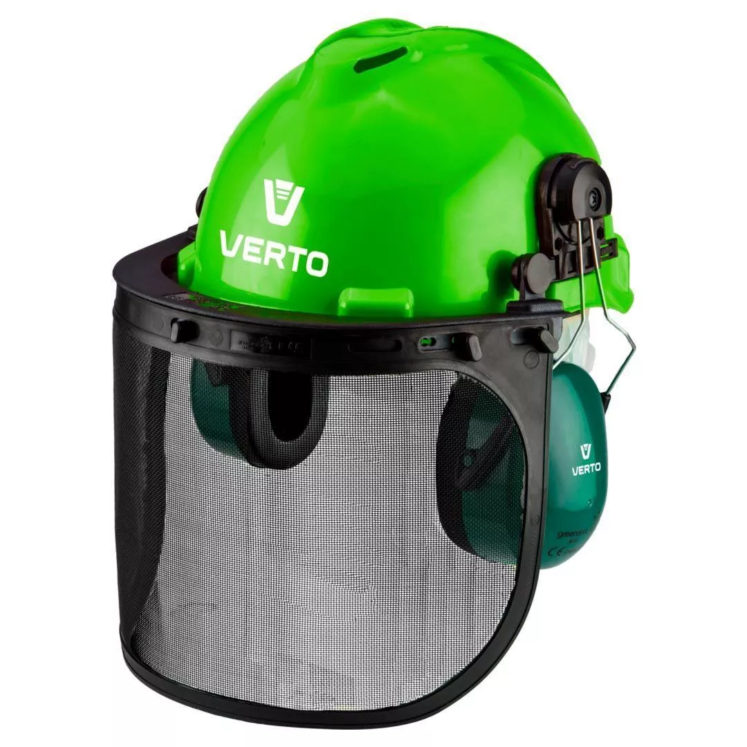 Средство защиты слуха, головы и зрения - 3 в 1 VERTO- это универсальный продукт для применения во время работ по бензокосилки, цепной пилой и другим оборудованием, когда пользователю нужен полный объем защиты: слуха, головы и зрения. Каска изготовлена ??из высококачественного пластика ABS и оборудована средством регулирования объема лба, позволяет подгонять размер. Мягкая подкладка наушников повышает комфорт эксплуатации. Козырек для лица изготовлен из металлической сетки и защищает лицо пользователя от мелких твердых частиц. Маркировка CE - это гарантия безопасности, которая доказывает, что продукт соответствует всем требованиям Европейского Союза.