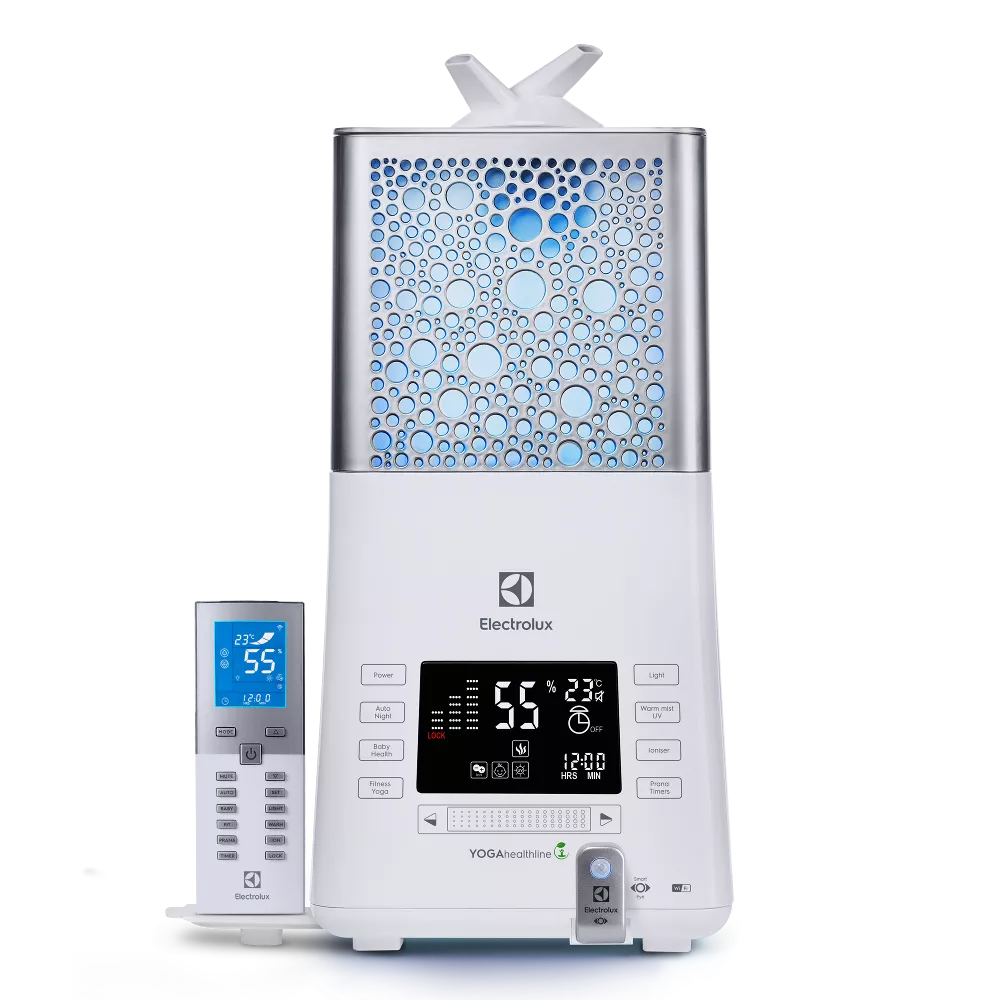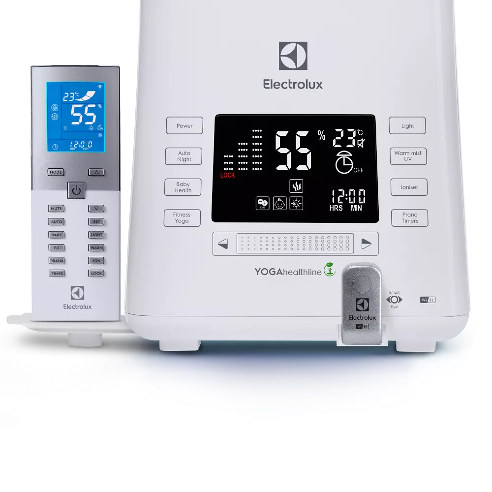IQ-метеопульт с высококонтрастным дисплеем и ударопрочным акриловым стеклом специально разработан для увлажнителей-ecoBIOCOMPLEX YOGAhealthline. Это многофункциональное устройство, которое выполняет не только функцию пульта управления, но и является метеостанцией, которая отвечает за определение и поддержание влажности. Технология I-Feel позволяет поддерживать здоровый микроклимат в области расположения IQ-метеопульта, а не прибора.