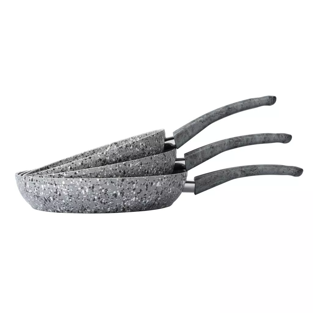С 3-шаровым антипригарным покрытием Discover. Это классическая модель с новыми технологиями, позволяющая забыть о проблемах во время приготовления продуктов. Оформление в виде серого гранита делает ее стильной. Подходит для всех видов кухонных плит, кроме индукционных. Возможность мытья в посудомоечной машине.