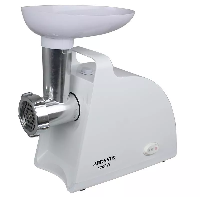 Потребляемая мощность мясорубки составляет 1700 Вт, а ее производительность достигает 1,6 кг/мин. В комплект входит два перфорированных диска для приготовления фарша разной консистенции и насадка для колбасок. Наличие реверса позволяет, не разбирая устройство, освобождать застрявшие частицы и прожилки при перемалывании пищи. Мясорубка отличается качеством и компактностью, имеет защиту от перегрева и удобную ручку для переноски.