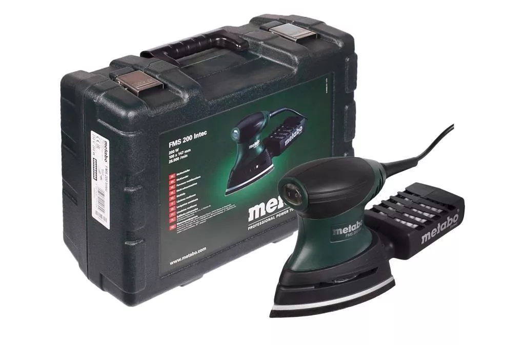 Вибрационная шлифовальная машина Metabo FSR 200 Intec представляет собой профессиональный инструмент, который разработан специально для интенсивных нагрузок. Прибор способен выполнять большие объемы работы, при минимальных затратах усилий оператора. Данная модель является прочным и надежным инструментом. Сбалансированность и наличие резиновых накладок обеспечивают прибору очень низкий уровень колебаний. Алюминиевая опорная панель и надежные амортизаторы выполняют антивибрационную функцию. Благодаря удобной конструкции и компактным габаритам достигается высокая производительность. Подшипники имеют надежную защиту от абразивной пыли, за счет этого срок службы прибора значительно увеличен. Угольные щетки оснащены функцией самоотключения, которая позволяет своевременно производить обслуживание инструмента. Встроенный пылеотсос и система фильтрации Intec максимально снижают количество пыли при работе инструмента. Шлифовальная подошва выполнена из полиуретана, благодаря чему достигается полный контакт с поверхностью. Сменные наждачные листы крепятся при помощи липучек или зажимов, именно поэтому их замена происходит быстро и просто. Вместе с прибором в комплекте идут: кассета пылесборник и сменный фильтр. Инструмент предоставляется в пластмассовом чемодане, что решает вопрос транспортировки и хранения. Вес прибора составляет 1,25 кг. Страна изготовитель КНР. Гарантия, предоставляемая производителем, 3 года.