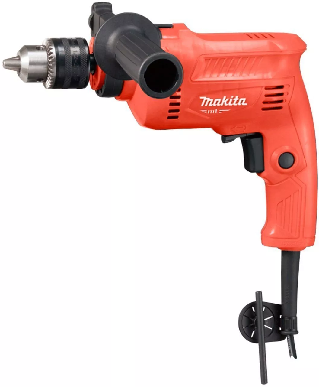 Быстрозажимной патрон позволяет быстро и без применения вспомогательных ключей заменить оснастку. Дополнительная рукоятка помогает во время интенсивной эксплуатации инструмента, обеспечивая надежный и уверенный хват. Сетевая двойная изоляция позволяет применять ударную дрель Makita M0801 в помещениях с незаземленной электросетью.