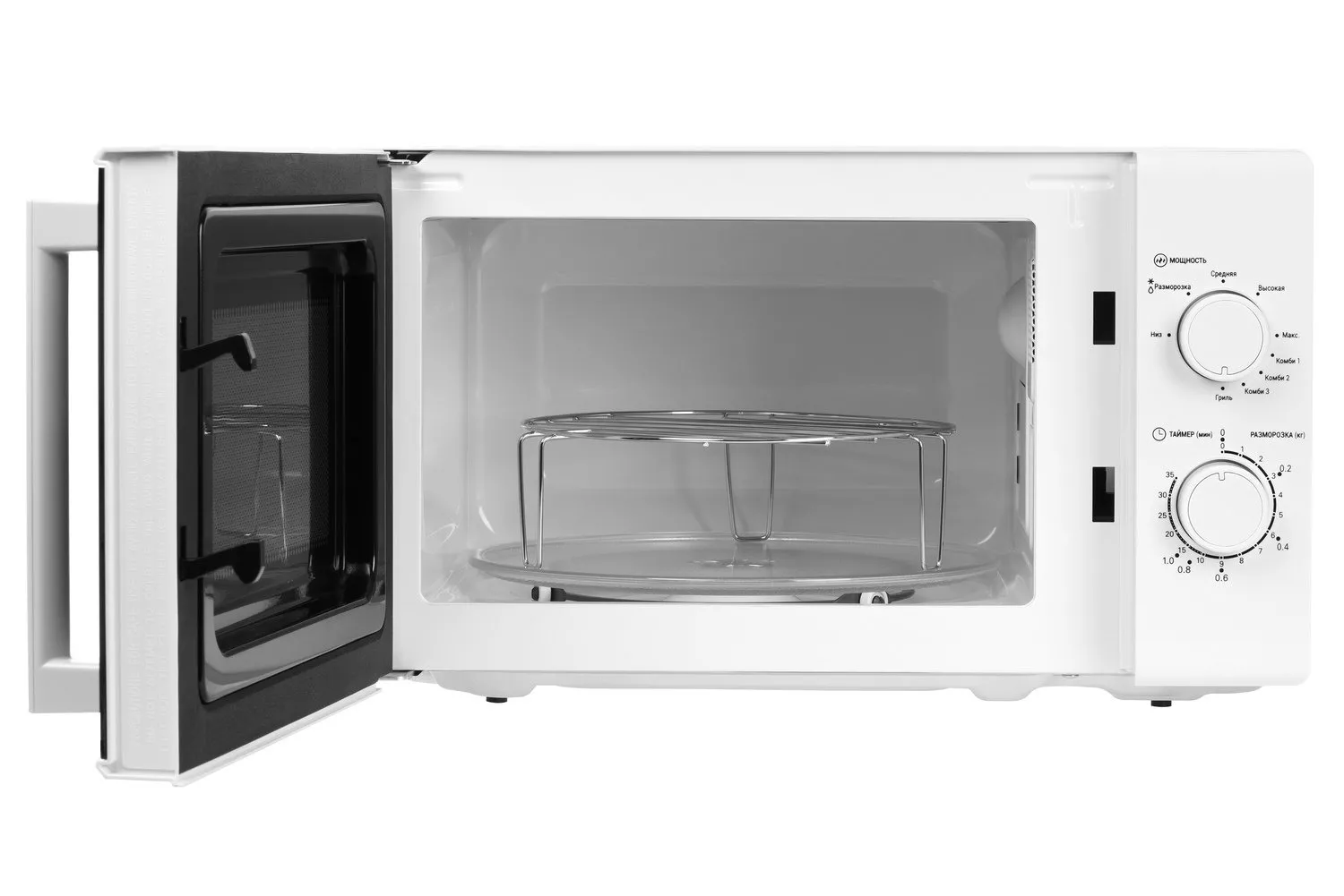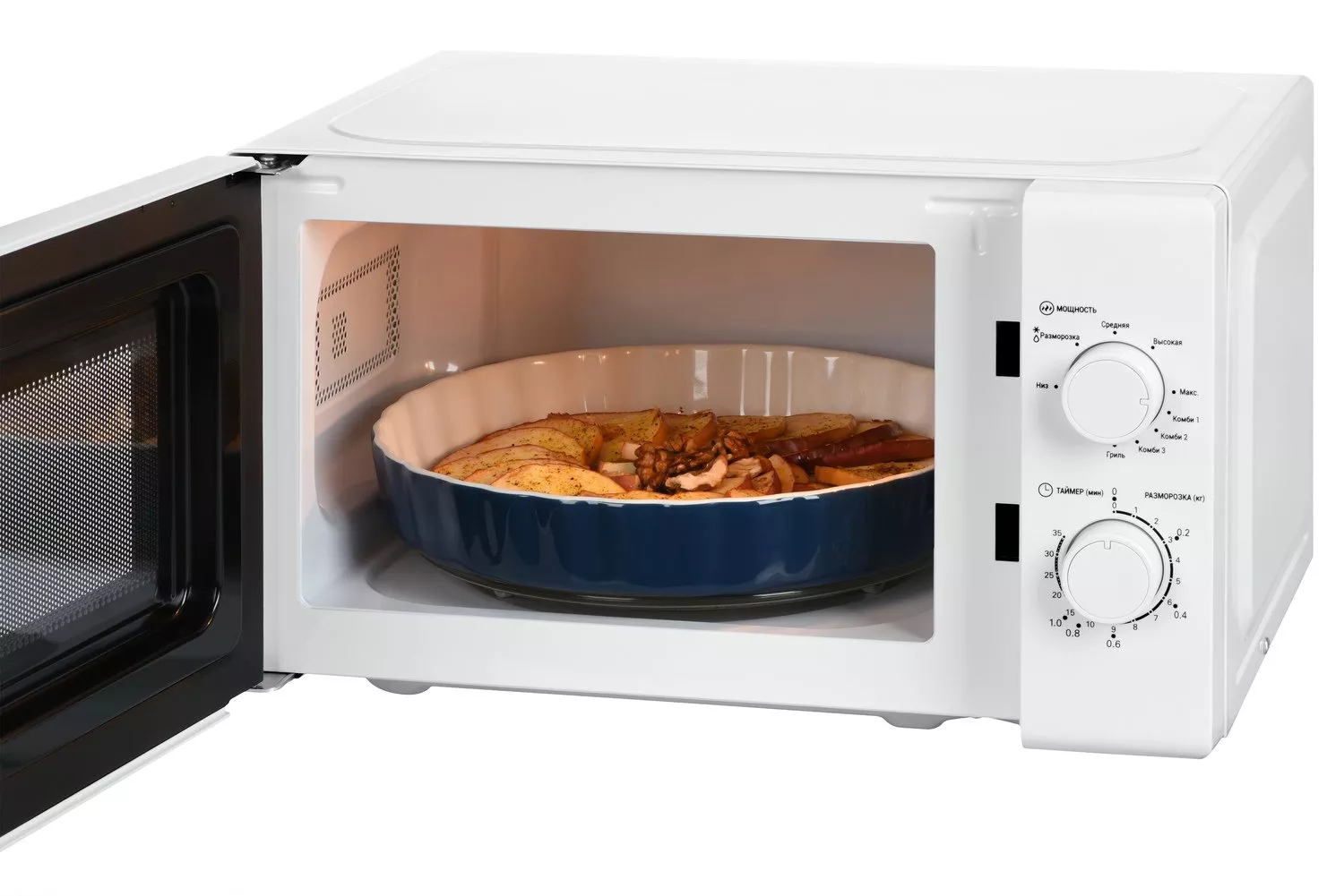 Модель проста и легка в использовании. С помощью механического управления будет удобно задавать определенный режим и время работы. Есть 5 уровней мощности. Можно быстро и эффективно разогреть еду или разморозить нужные продукты. Неприхотливо устройство и в уходе. Достаточно тщательно промыть микроволновку и она снова будет готова к работе.