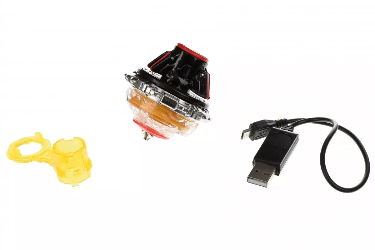 Волчок выполнен в черно-желто-красных цветах с прозрачными вставками. С таким набором вы не оставите противникам ни единого шанса на победу!