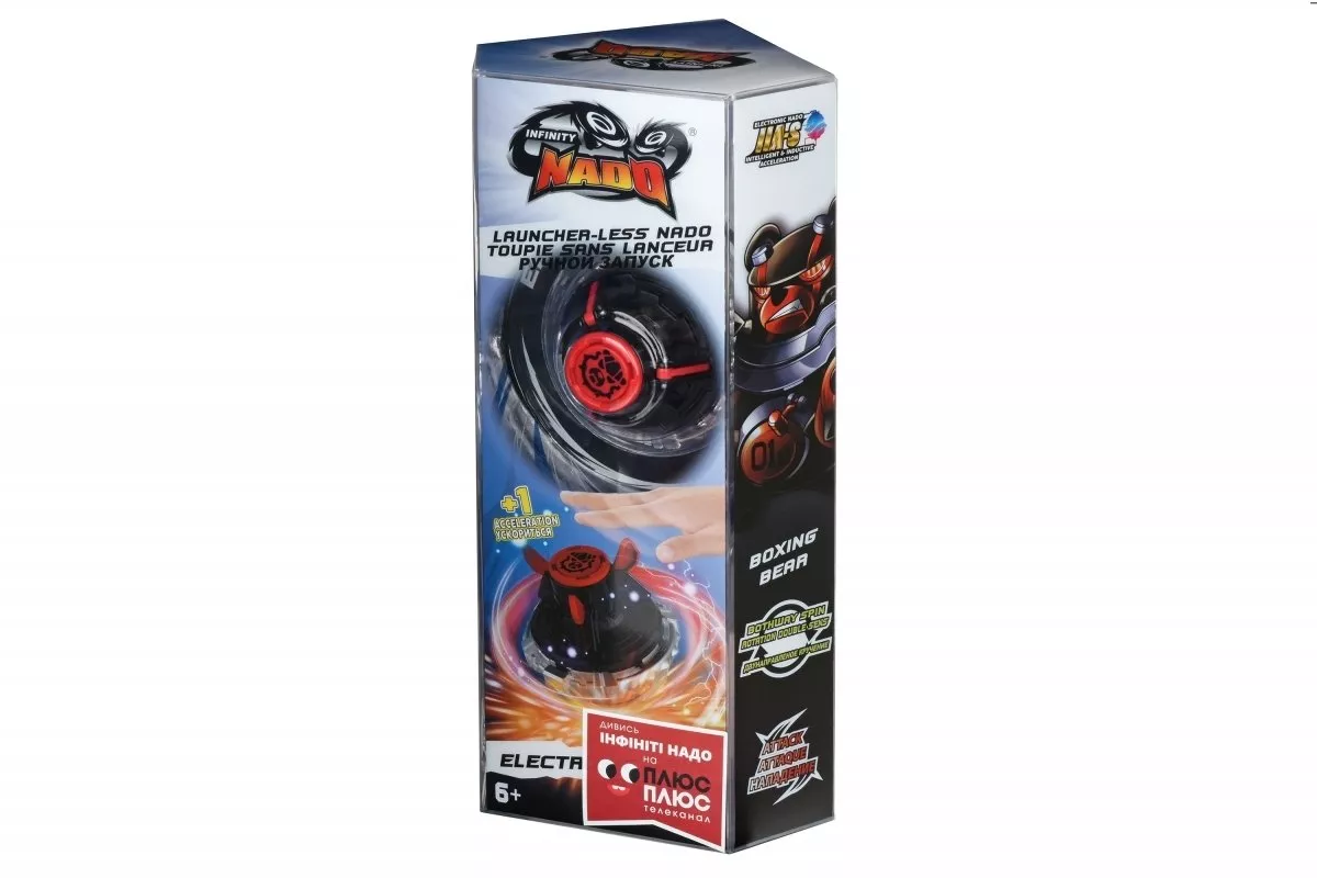 Впечатляющий набор с новым волчком «Boxing Bear» с характером атакующего. Волчок имеет инновационный дизайн и оснащен аккумулятором и механизмом ручного запуска. Индукционный механизм движения позволяет волчку автоматически ускоряться. Его особенность в том, что он может вращаться в обоих направлениях.