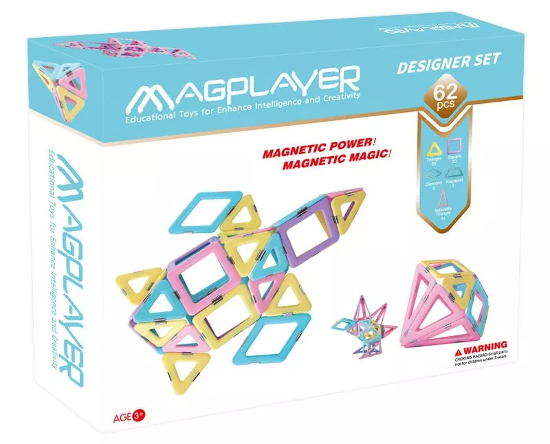 Магнитные строительные блоки, которые включают в себя несколько форм из пластика и магнитов. Вы можете соединить фигуры с магнитами, которые обернуты внутри каждого края, чтобы построить либо 2D, либо 3D-модели на ваше усмотрение. Конструктор можно использовать для удовольствия, образования, он может помочь детям развивать творчество и воображение.