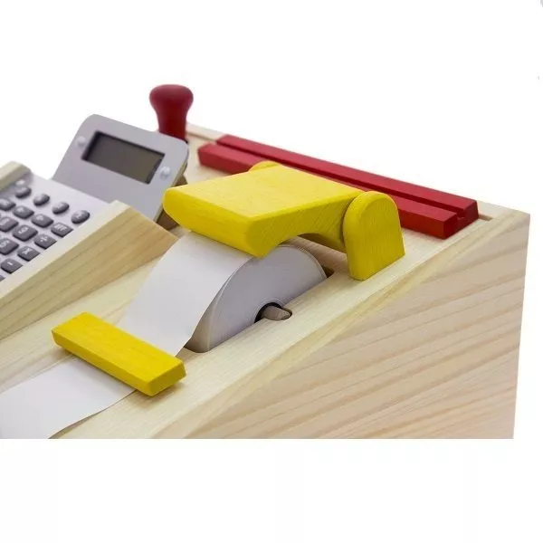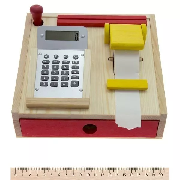 Кассовый аппарат выполнен из высококачественного дерева, покрытого нетоксичными красками. Кассовый аппарат имеет компактный размер – 22,5х20х10 см, поэтому малыш даже сможет взять игрушку с собой в садик. Набор не имеет мелких элементов, поэтому подходит для детей от 3 лет.