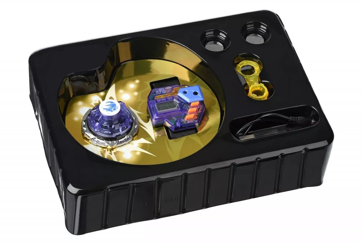 Волчок и часы выполнены в ярких фиолетовых цветах с голубыми и оранжевыми элементами. Ремешок часов - из мягкого резинового материала. С таким набором вы не оставите противникам ни единого шанса на победу!