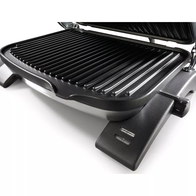 Многофункциональный контактный гриль Gorenje KR1800EPRO позволит Вам приготовить разнообразные и вкусные блюда, которые порадуют вас и ваших гостей. Гриль имеет четыре температурных режима с удобным регулированием температуры, а индикатор позволит следить за готовкой. Антипригарное покрытие пластин обеспечит отсутствие пригорания. Съёмные пластины и поддон для сбора сока – облегчат обслуживания и уход за прибором. Гриль имеет резиновые ножки и отделение для хранения шнура длинной в один метр, что позволит экономно и практично использовать пространство на кухне. Алюминиевая рабочая поверхность и корпус с нержавеющей стали обеспечат долговечность и надежность гриля.