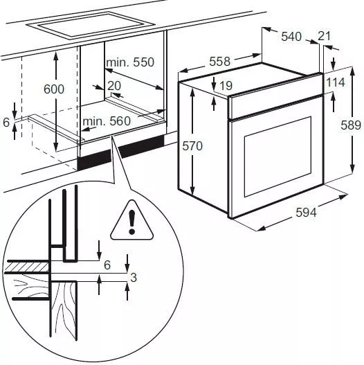 Высота для встраивания, мм | 593 |
