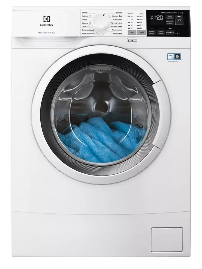 Компактная стиральная машина PerfectCare 600 с системой SensiCare корректирует длительность программы согласно размерам загрузки, экономя электричество и воду и не допуская перестирывания одежды.
