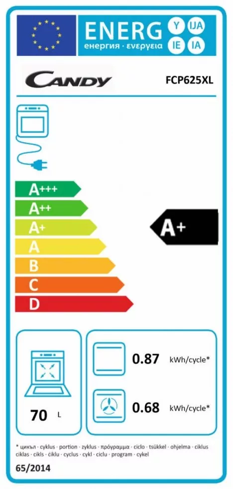 Класс энергопотребления А+ духового шкафа Candy позволит вам наслаждаться готовкой с минимальными затратами электричества.