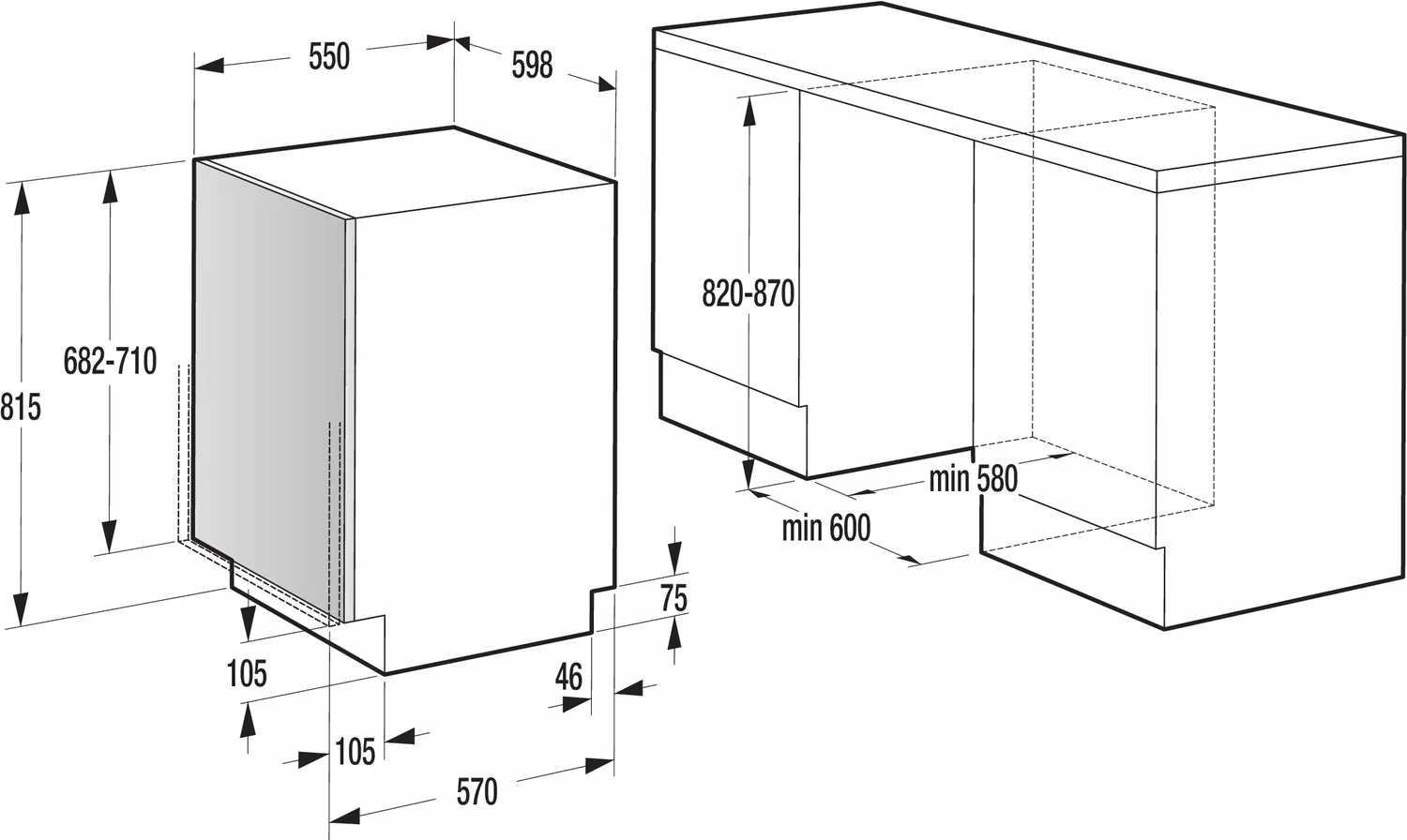 | Высота для встраивания, мм | 820 |