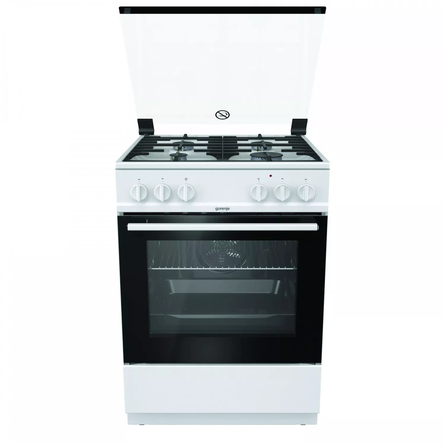 Комбинированная плита Gorenje K6121WF оборудована газовой варочной поверхностью с четырьмя конфорками и многофункциональной электрической духовкой.