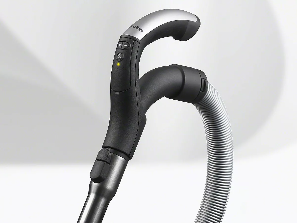 У всех напольных пылесосов Miele есть тонкая металлическая полоска, встроенная в рукоятку, которая работает как «молниеотвод». Это позволяет предотвратить возникновение статического разряда между прибором и пользователем.