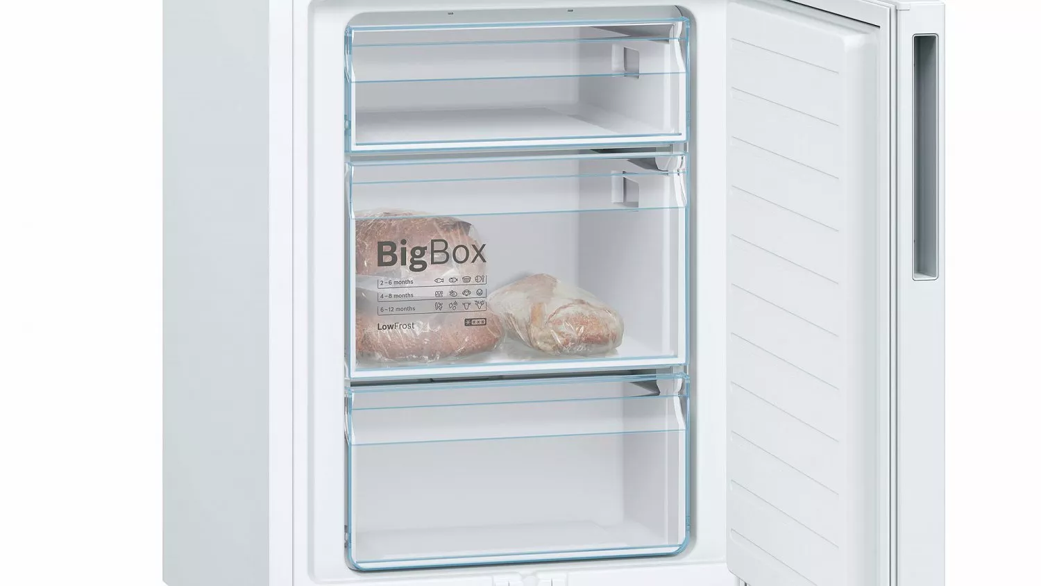 В морозильной камере кроме стандартных контейнеров Вы найдете просторный контейнер BigBox высотой 29 см, в который без труда помещаются "крупногабаритные" продукты. Например, индейка до 8 кг.