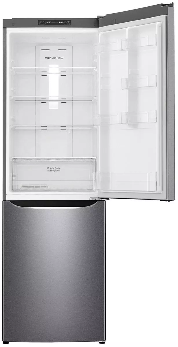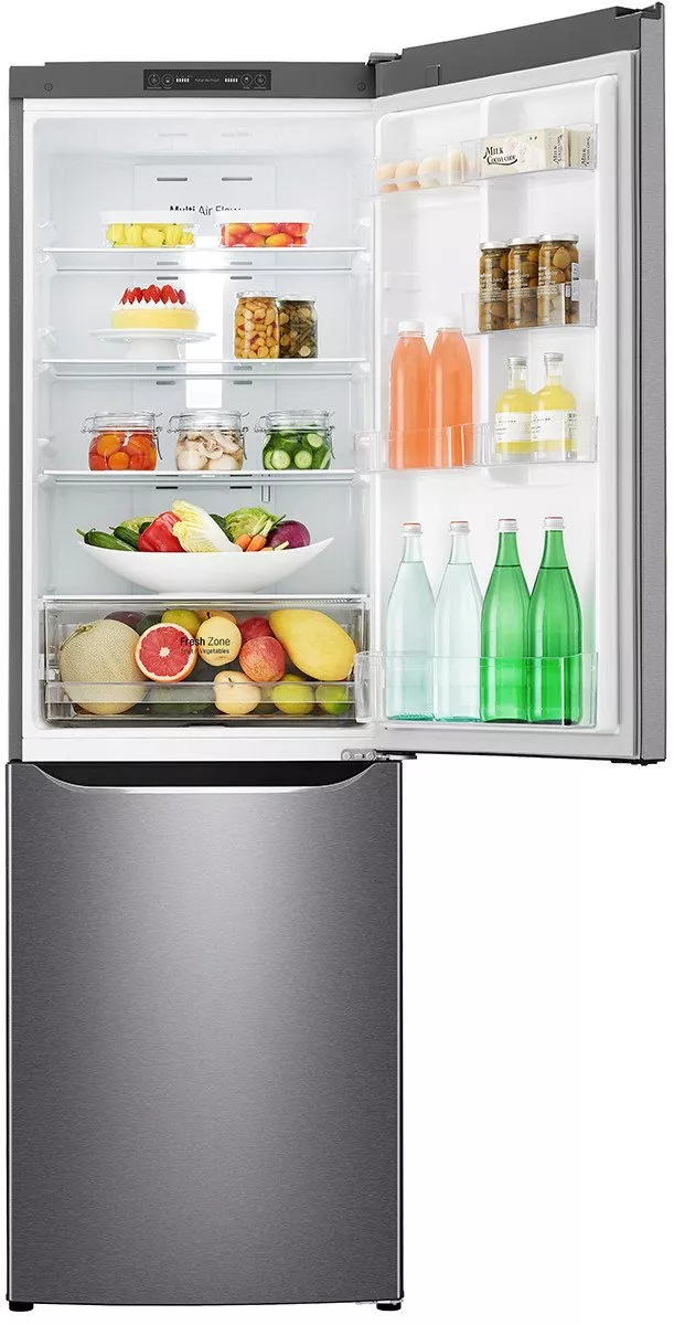 Главная особенность – наличие инертного компрессора. Модель LG GA-B419 оснащена тремя прозрачными ящиками и стандартным генератором льда. Для яиц обустроено отдельное место в аппарате, а также есть ящик для овощей и фруктов. На дверках встроено четыре полки и шесть дверных корзинок.