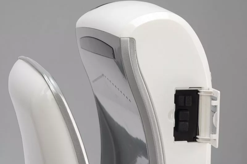 В модели EHDA/HPF-1200W реализована технология двустороннего обдува Counter Flow, представляющая собой систему отверстий с обеих сторон сушильного отсека, которая позволяет сушить руки одновременно с двух сторон мощными потоками теплого воздуха. Использование этой технологии делает процесс сушки рук более удобным, а помещение – чистым, поскольку вода, сдуваемая с рук в виде капель и брызг, попадает на дно сушильного отсека и стекает в специальную емкость – контейнер. Данный контейнер, расположенный на нижней стороне прибора, легко снимается и осушается.