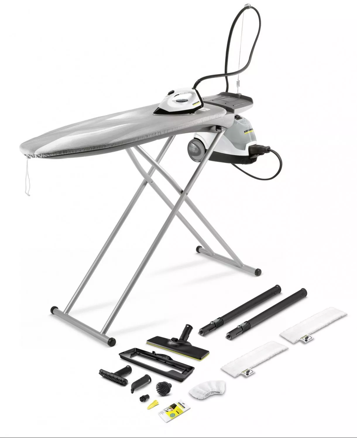 Благодаря наличию в комплекте парового утюга, модель SI 4 EasyFix Premium Iron используется и для глажения. Возможность дозаправки водой в любое время позволяет выполнять работы без долгих перерывов. Гладильная доска с системой продува и отвода пара, доску можно регулировать под свой рост. Капельную воду не выдаёт, используя только сухой пар. Интенсивная подача пара гарантирует превосходную утюжку с экономией до 50 % времени.