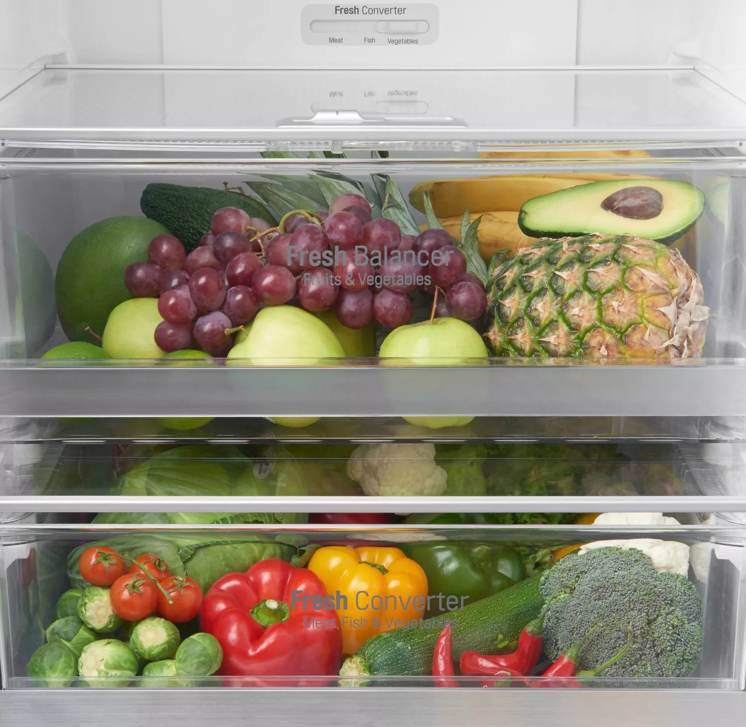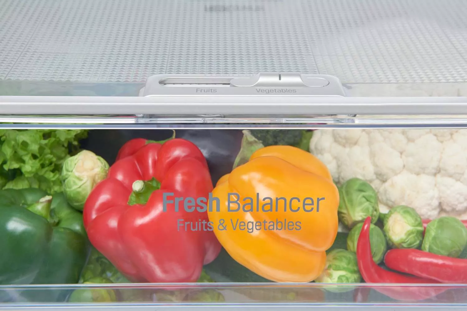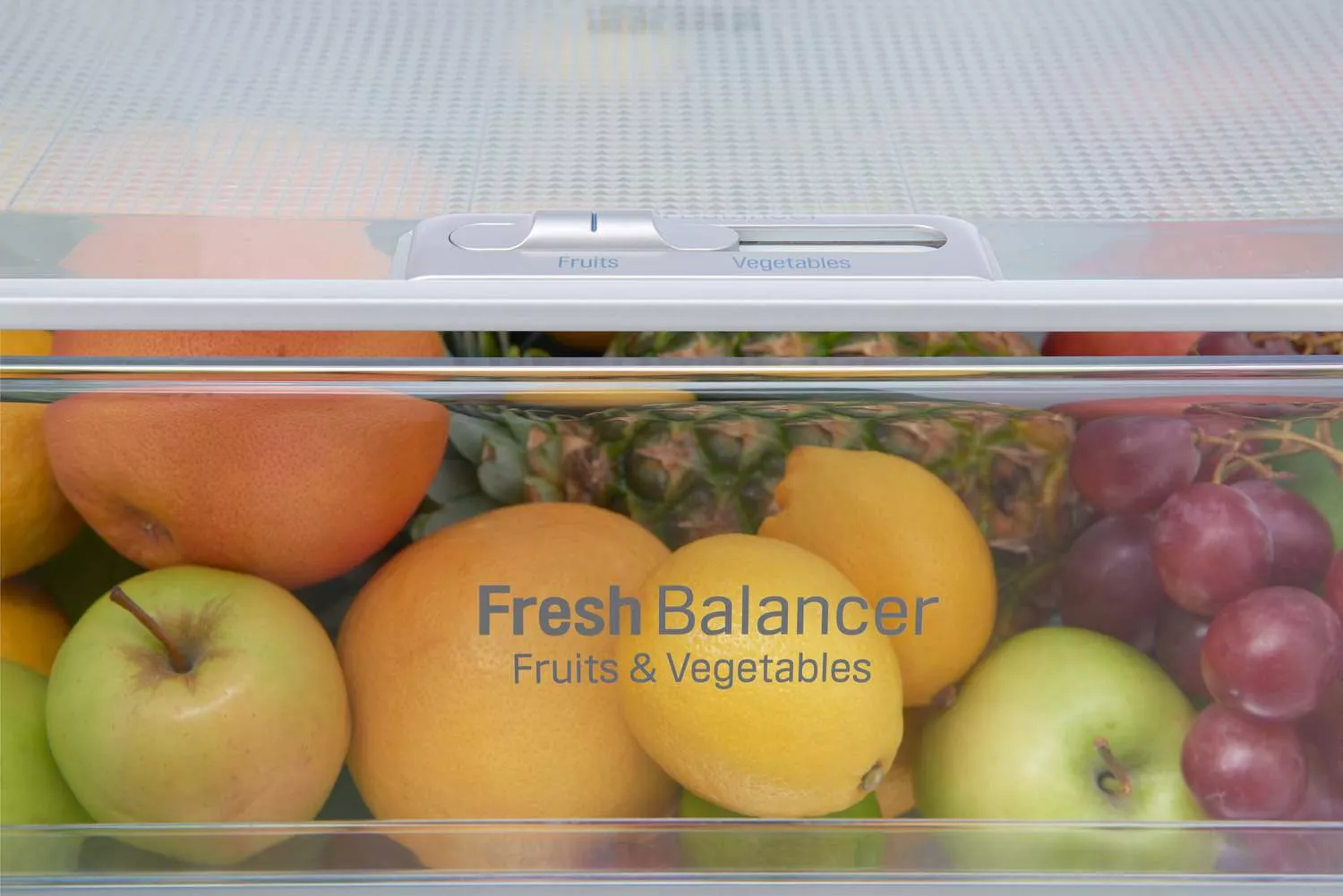 При помощи простого регулятора, FRESHBalancer* поддерживает оптимальную влажность для ваших овощей и фруктов (переключение двух режимов).