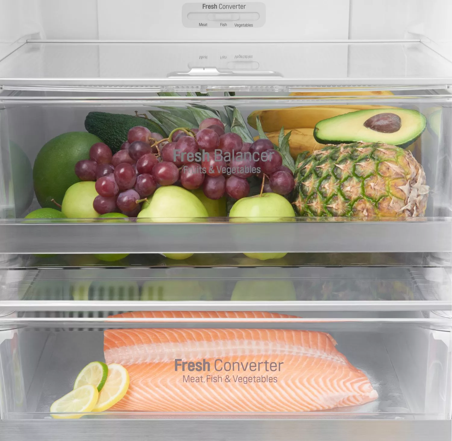 Система LG NatureFRESH* обеспечивает циркуляцию холодного воздуха через множество специальных отверстий внутри камеры, тем самым обеспечивая равномерную температуру во всех уголках.