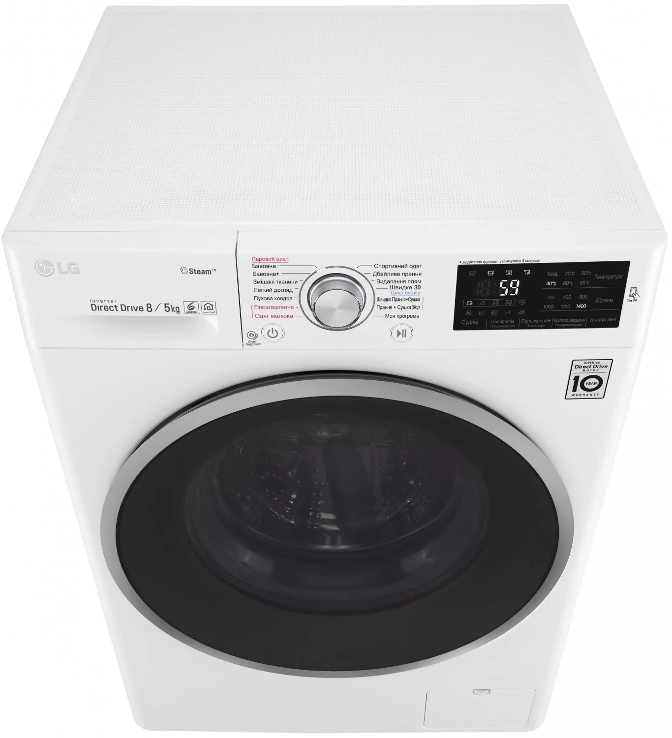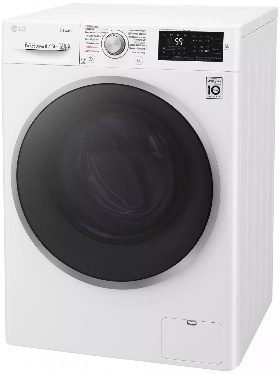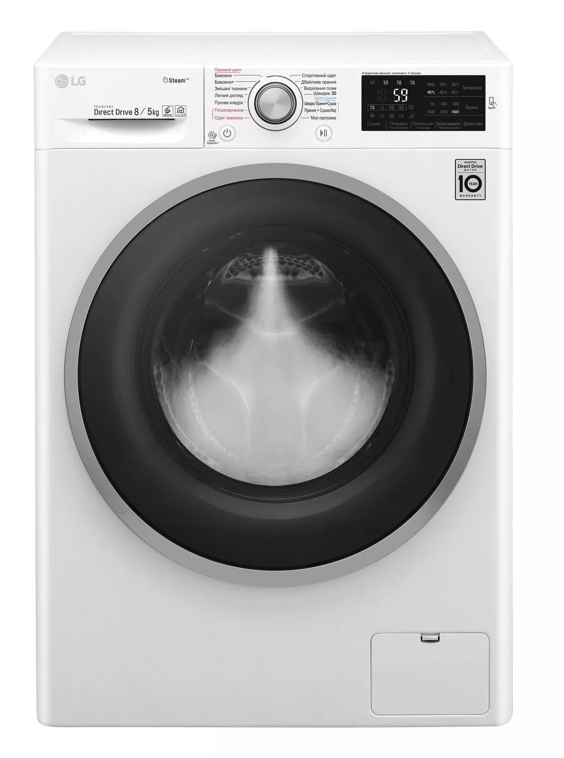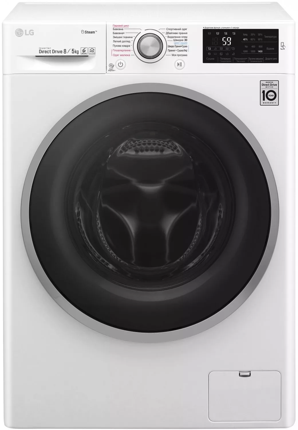 Особенности | Загрузка 8 кг / Дополнительная функция - сушка 5 кг, Инверторный мотор с прямым приводом (Inverter Direct Drive), Мобильная диаг |