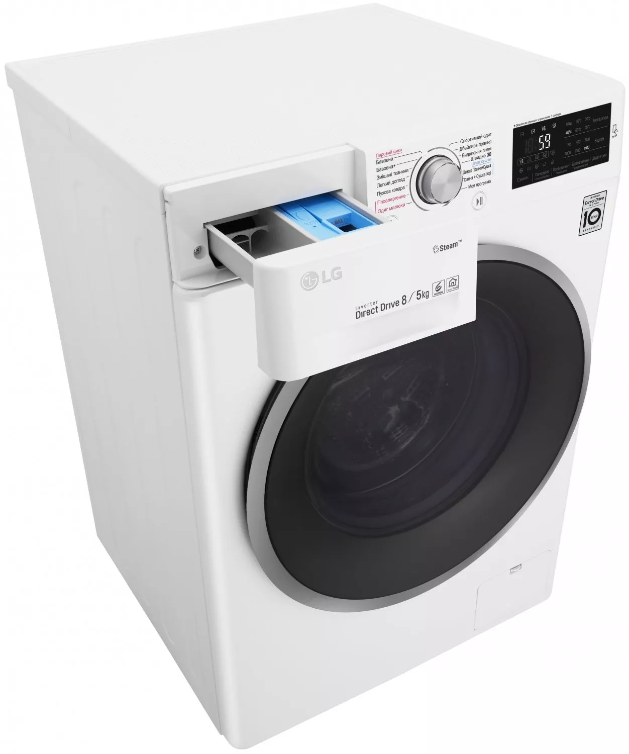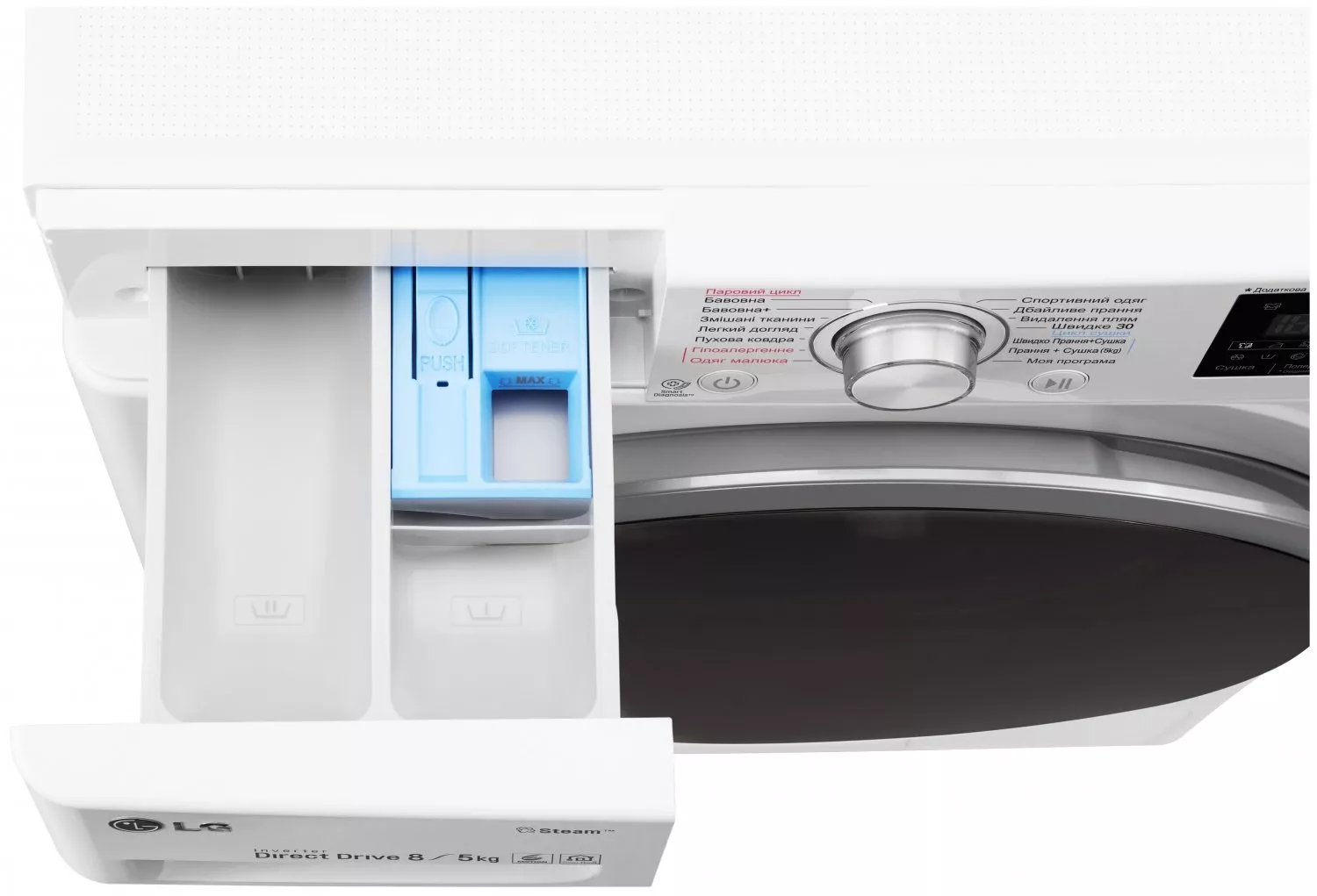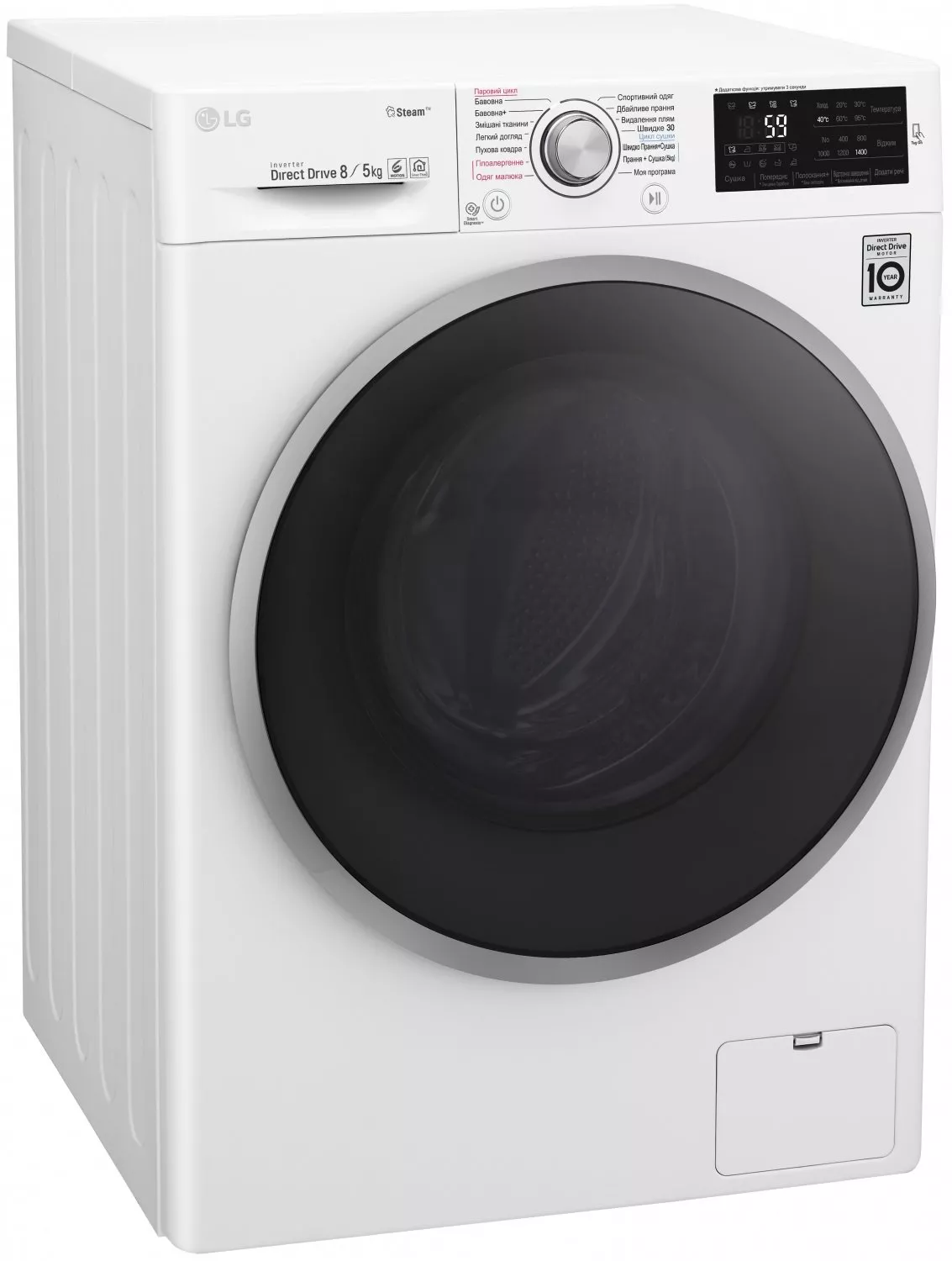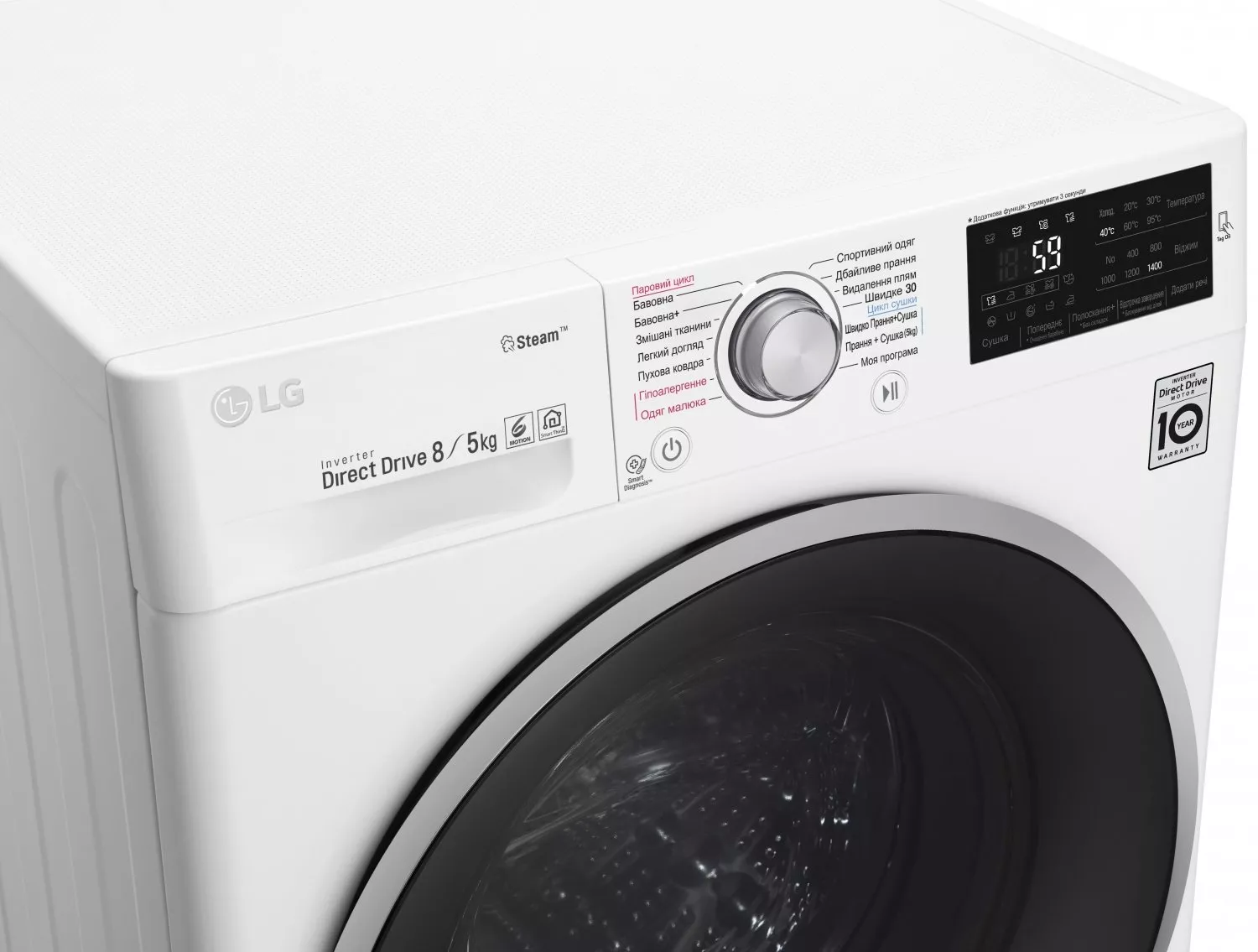 Особенности | Загрузка 8 кг / Дополнительная функция - сушка 5 кг, Инверторный мотор с прямым приводом (Inverter Direct Drive), Мобильная диаг |