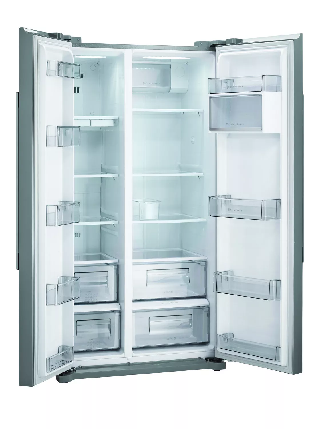 Роскошь свежести, практичное двойное открывание, привлекательный дизайн и экологическое потребление. В 540-литровом холодильнике Side by Side вы можете легко хранить большое количество пищи. Кроме экстремального пространства новой модели, так же выделяется инновационный дизайн интерьера со стеклянными полками и большим отделением для хранения, а так же практичными глубокими полками внутри двери.