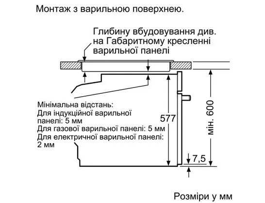 | Высота для встраивания, мм | 600 |