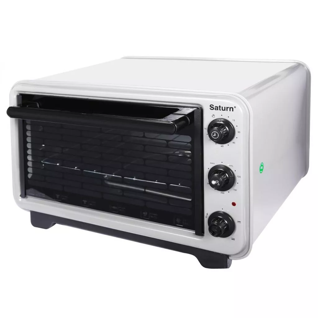 Электропечь SATURN ST-EC10702 обладает мощностью в 1300 Вт, а ее объем составляет 36 литра. В зависимости от того, какое блюдо вы готовите, можно выбрать подходящий режим нагрева: нижний, верхний или комбинированный.