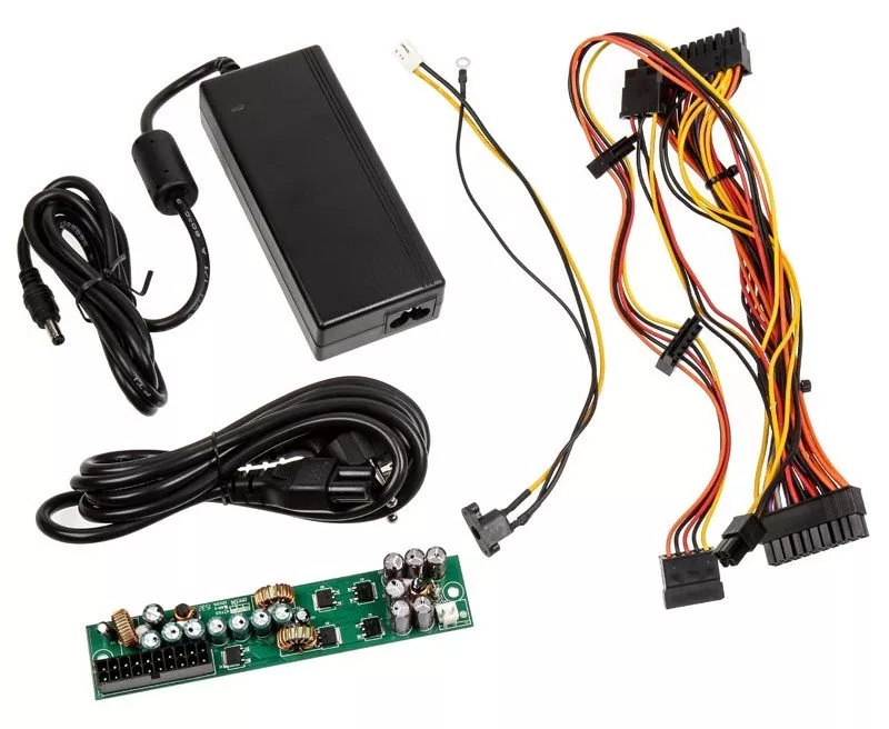 CDP-085ITX предназначен для использования с корпусами IX-01B and IX-03B. В комплектацию в дополнение к безвентиляторному внешнему блоки питания входит также плата DC/DC. Черный блок питания мощностью 85 Вт обеспечивает 12 В на выходе, 7.5 Ампер