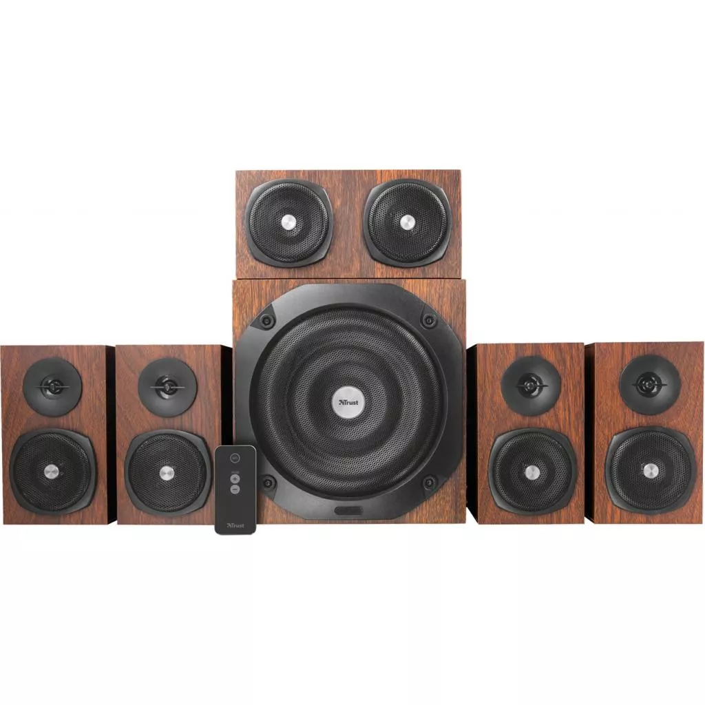 Trust Vigor 5.1 Surround Speaker System for pc — это мощная акустическая система с форматом звучания 5.1 в деревянном корпусе позволяет насладиться объемным звучанием на ПК.