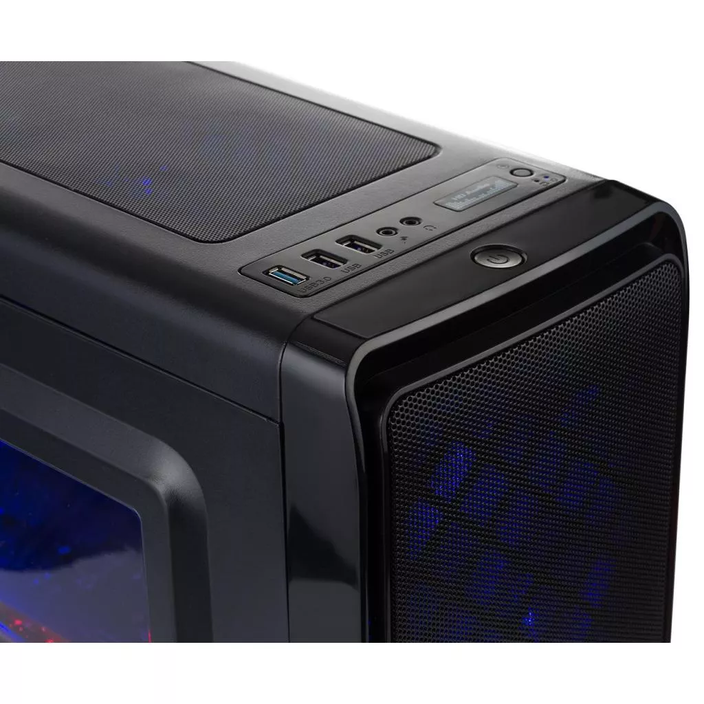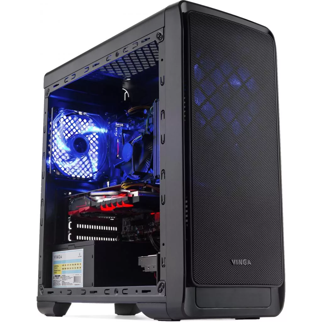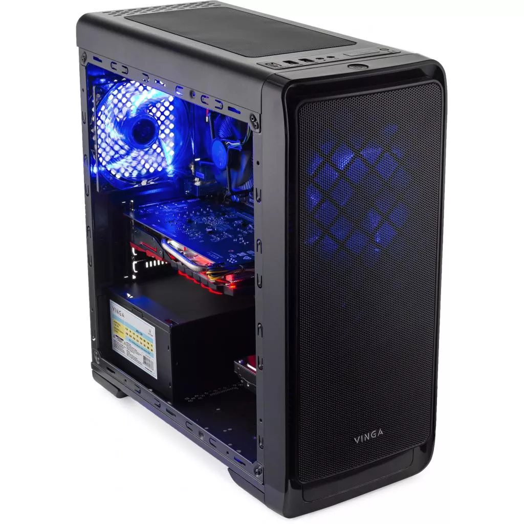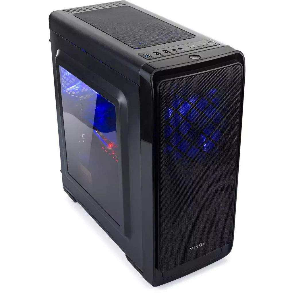 Модель Smart 0010 собрана в оригинальном комплексе производства компании Vinga. Он оснащен кулерами с системой подсветки, подачу энергии в которые осуществляет встроенный блок питания на 450 W. На передней панели размещена перфорированная решетка, которая выполняет не только декоративную функцию, но и практическую: позволяет потокам нагретого воздуха беспрепятственно выходить из блока под воздействием движения лопастей вентиляторов.