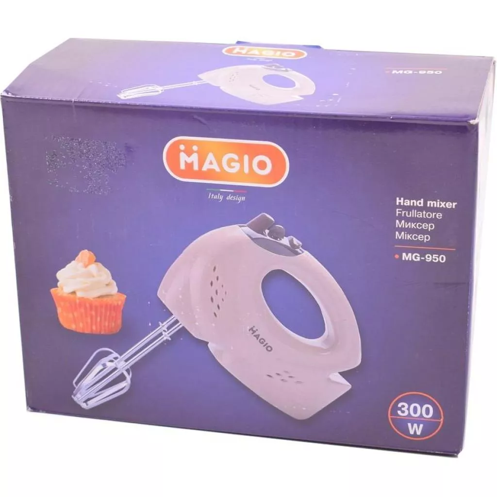 Удобный миксер MG-950 позволит замешивать самые разные продукты, используя прилагаемые насадки.