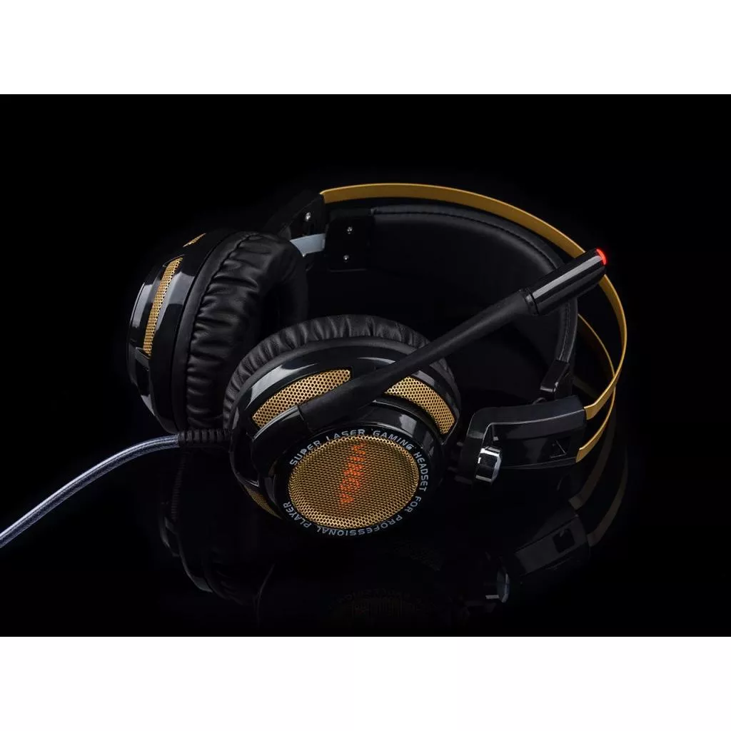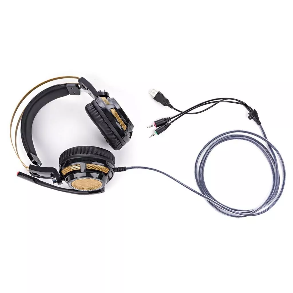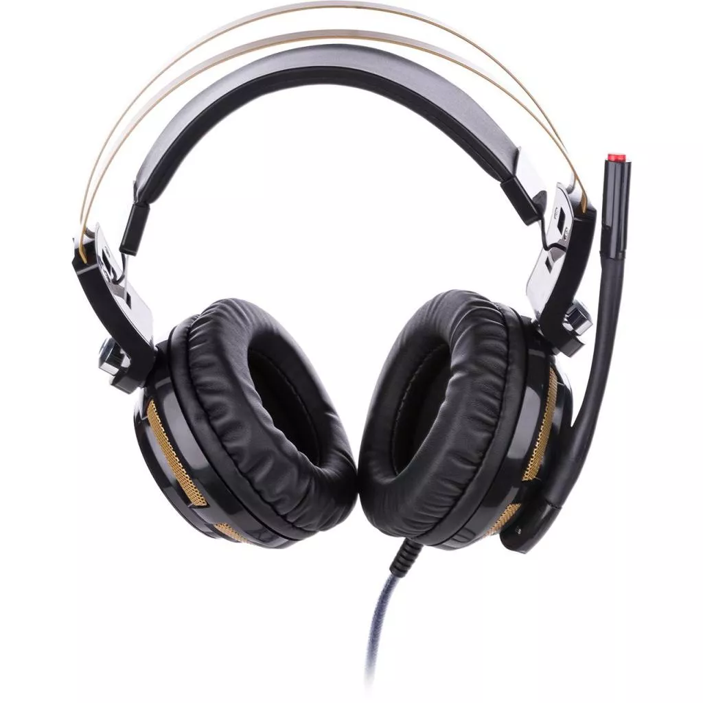 Сопротивление – 32 Ом, система подключения стандартная – с помощью трёх PIN-контактов и двух джеков 3.5 мм. Наушники держатся с помощью дуги над головой, сконструированной двумя слоями: две каркасные детали с мягкой подкладкой. Благодаря подкладке даже при длительном ношении наушники ощущаются комфортно и не давят. Особенности модели – наличие подсветки и регулятора громкости, который делает использование наушников ещё более комфортным и позволяет не отвлекаться от процесса прослушивания музыки или игры.