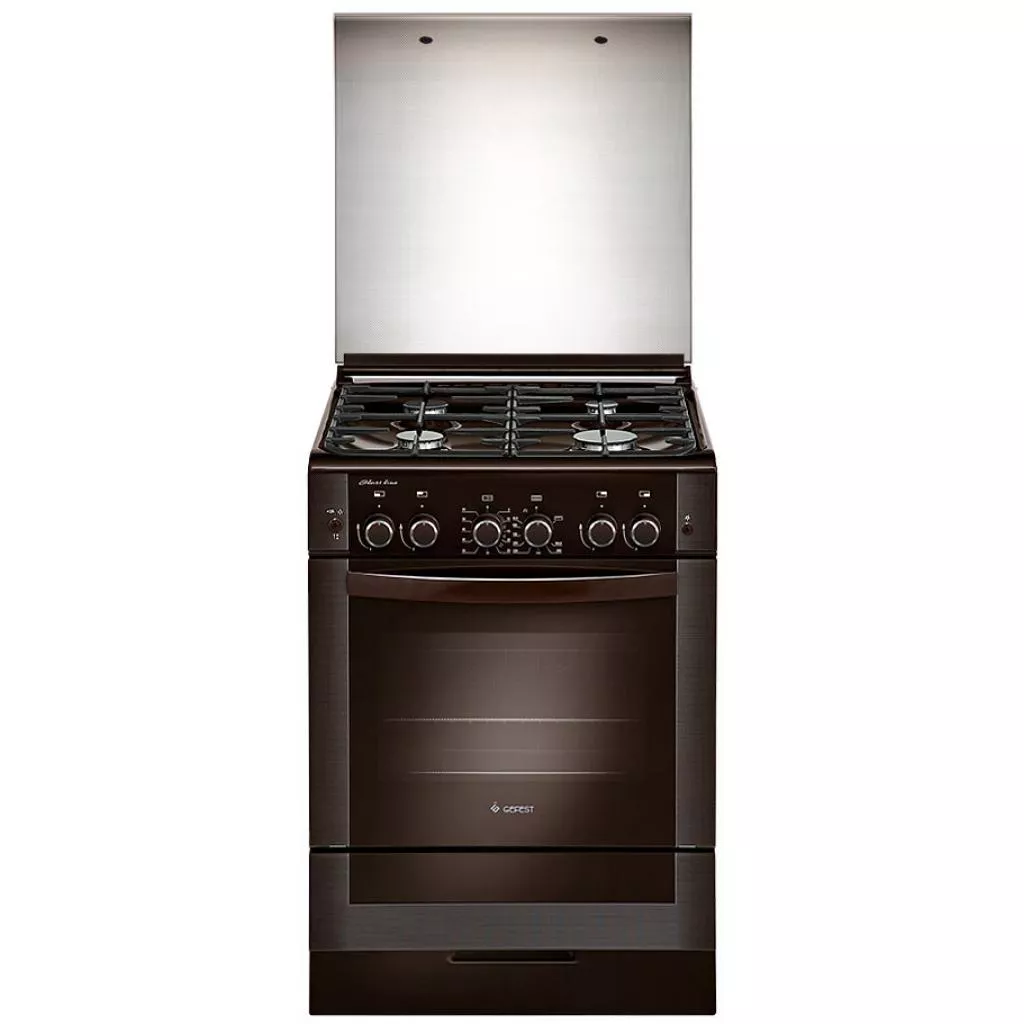 отличается от аналогичных устройств в первую очередь необычным цветовым решением. Серый цвет «под мрамор» будет отлично выглядеть в современном кухонном интерьере. Передняя панель и стекло духовки черные, благодаря чему эффектно выделяются белые элементы управления и ручка открывания дверцы духовки. Варочная панель и духовка Gefest 5300 – газовые. Есть в наличии одна конфорка большого диаметра для быстрого разогрева, одна маленькая (на ней удобно будет варить кофе), и две - стандартного размера, наиболее востребованные. Регуляторы подачи газа поворотные.