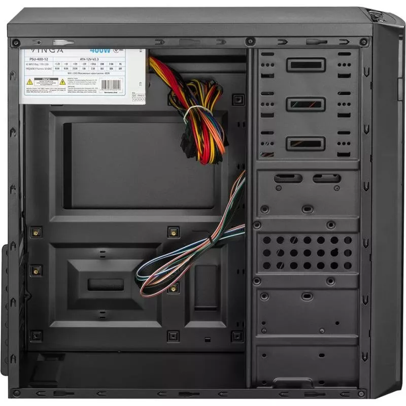 Познакомьтесь с новым корпусом для сбора классического компьютера от компании Vinga – оптимальное соотношение цена/качество для построения домашнего или офисного компьютера со средними характеристиками. Корпус не отличается особенным дизайном, выполнен в стандартном тёмном цвете, легко впишется в любой интерьер и дизайн помещения. Доступна вертикальная установка корпуса. Устройство поддерживает типа материнских плат – ATX в формате классики и микро и ITX в формате мини. Блок питания встроен, расположен сверху, мощность блока достигает 400 Вт – средний показатель. Мощности хватит для выполнения рядовых задач.