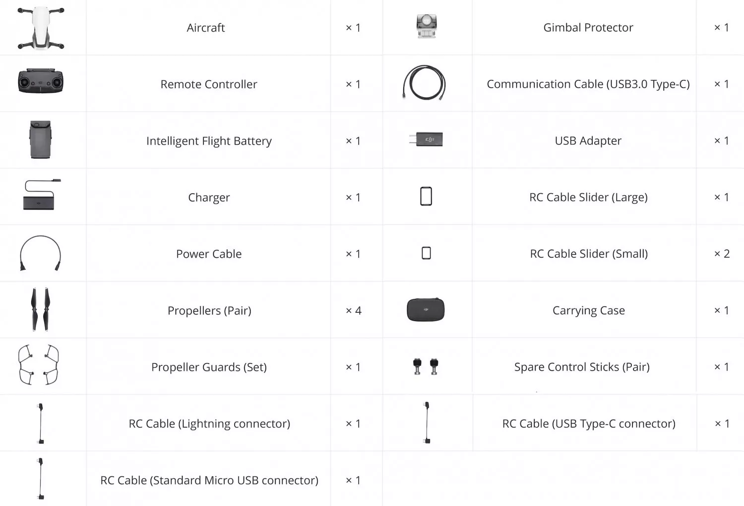 Совместимость аксессуаров | DJI Mavic Air |