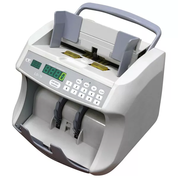 Счетчик банкнот Speed LD-70 Скорость пересчета 600/900/1200/1500/ б/мин. Детекция: по плотности, по размеру. Режим сквозного суммирования и пакетный режим, два дисплея. Вместимость счетчика купюр Speed LD 70: 400/200 банкнот.