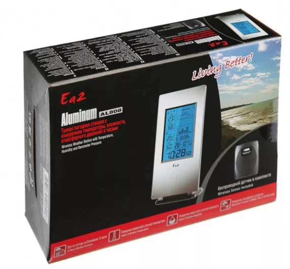 Метеостанция Ea2 AL808 Aluminium Slim - недорогая популярная погодная станция для дома и офиса. Цифровая беспроводная метеостанция с возможностью подключения до 3-х радиодатчиков.