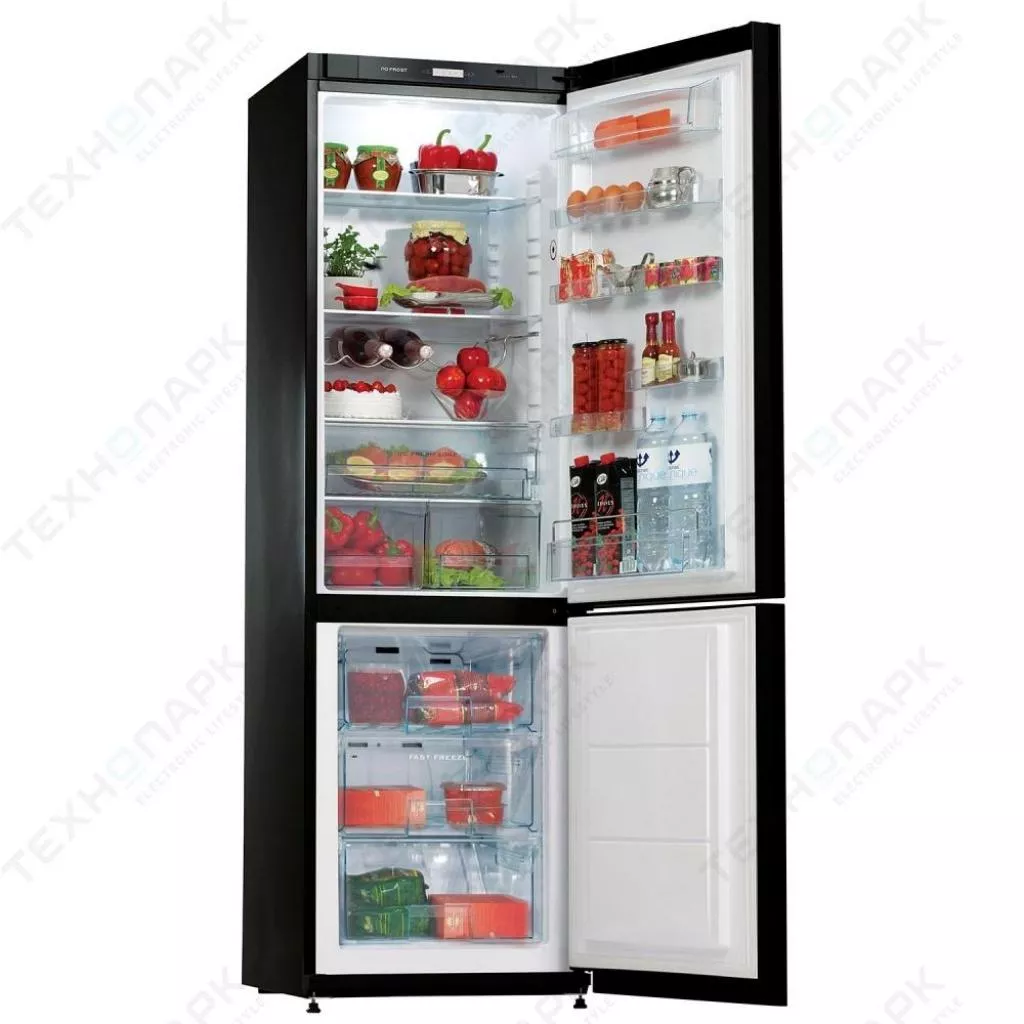 Размораживание холодильной камеры происходит автоматически. Отделение оборудовано тремя стеклянными полками, двумя контейнерами для овощей, имеются дверные корзины, подставка для яиц и полка для бутылок. Внутреннее антибактериальное покрытие стенок камер предотвращает появление плесени и грибков, которые способствуют появлению неприятных запахов.
